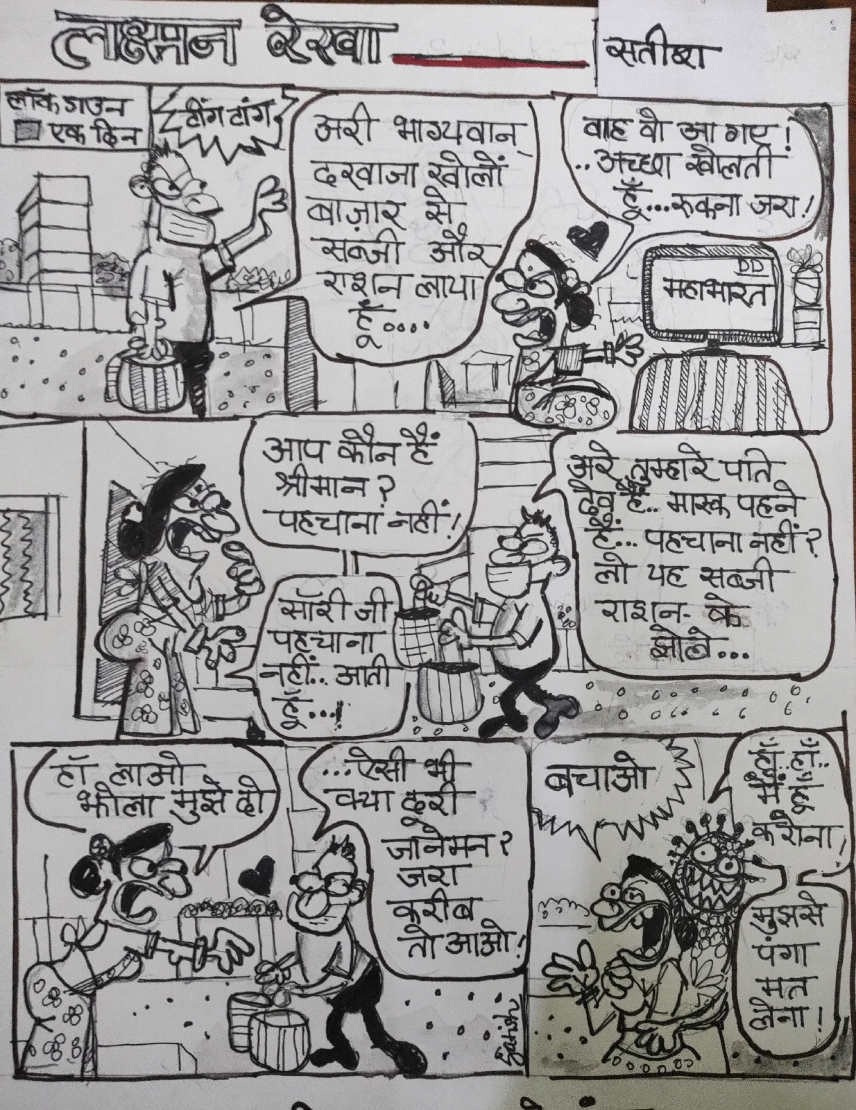 Corona संक्रमण से पूरी मानवता प्रभावित रही है। इस संक्रमण की रोकथाम के लिए Goverment ने lockdoun लगाए। परंतु लोगों ने मज़े भी लिए। प्रस्तुत comics page इसका एक उदाहरण है। जब medical facilities, police Administration and Groceries supply वालों ने जमकर अपनी Duty निभाई और उसी दौरान कई comics situaton उभरे।